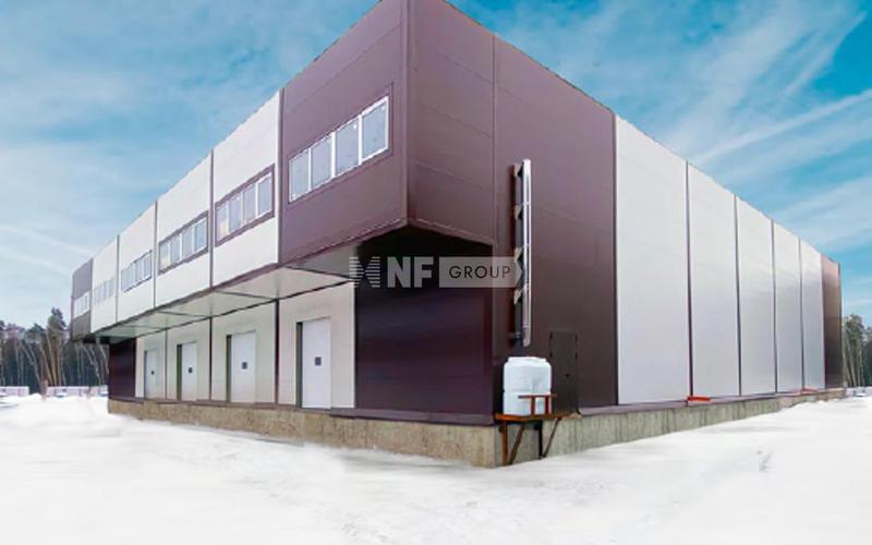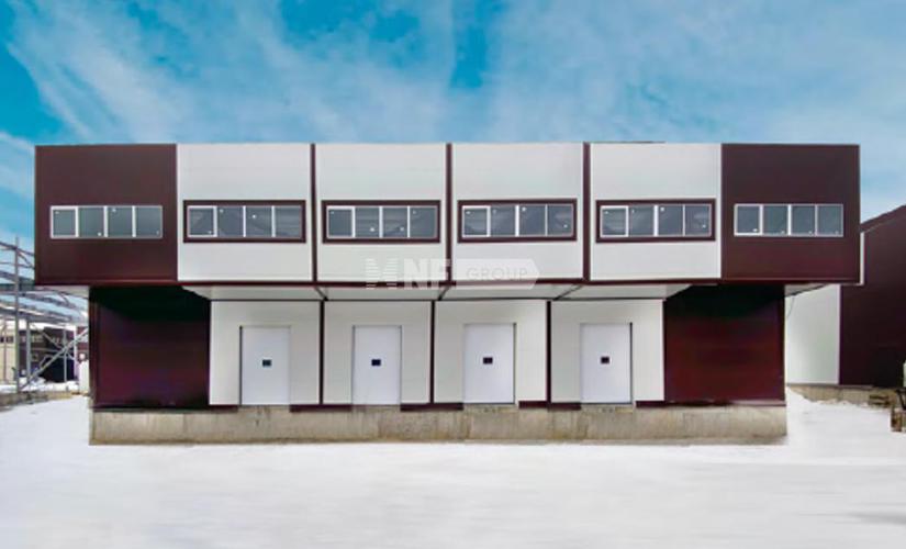 Каркас зданий выполнен на колоннах с шагом 12 x 24 м, обшитый сэндвич-панелями толщиной 120 мм.