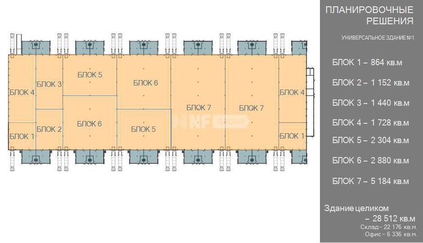 Площади блоков начинаются от 870 м2. Есть возможность объединения для увеличения площади. Высокое качество строительства гарантируется опытом генерального подрядчика, современными материалами и технологиями.